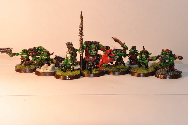 Also added a unit of five Stormboyz (which was a blast to paint). Especially like the 'hitchhiker' gretchin that are on a couple of the stormboyz... :)